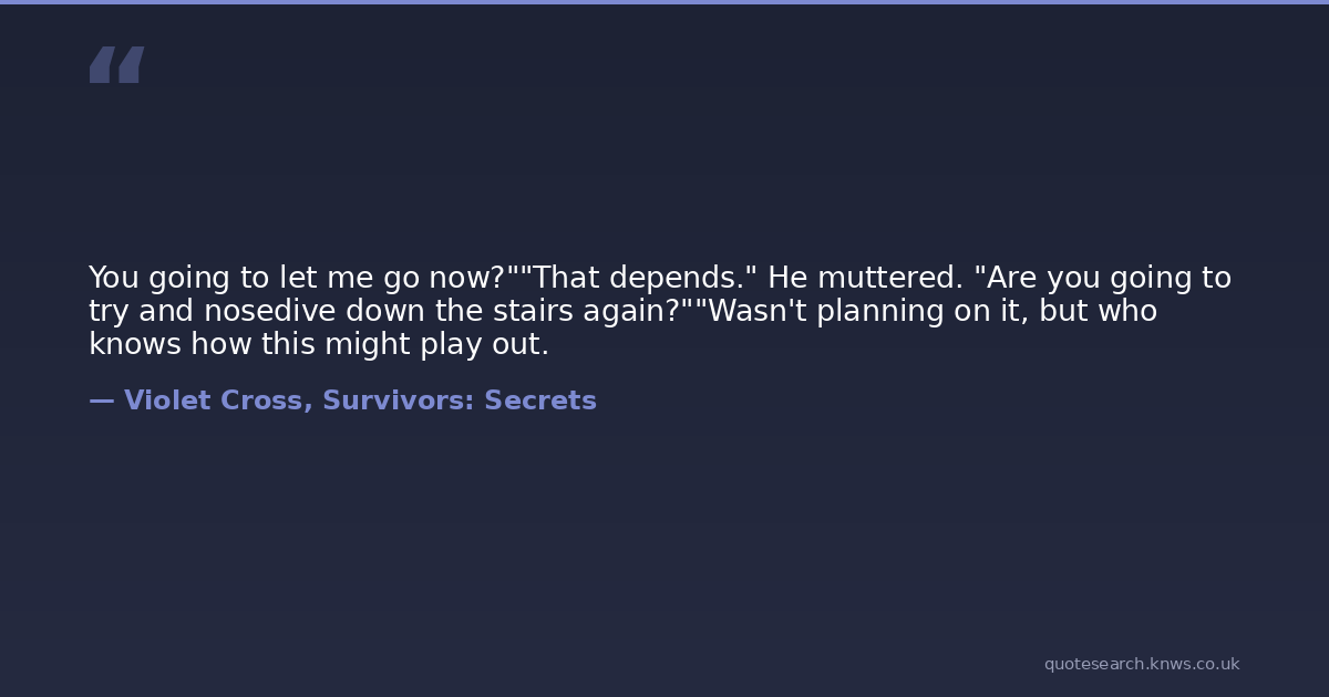 You going to let me go now?""That depends." He muttered. "Are you going to try and nosedive down the stairs again?""Wasn't planning on it, but who knows how this might play out.