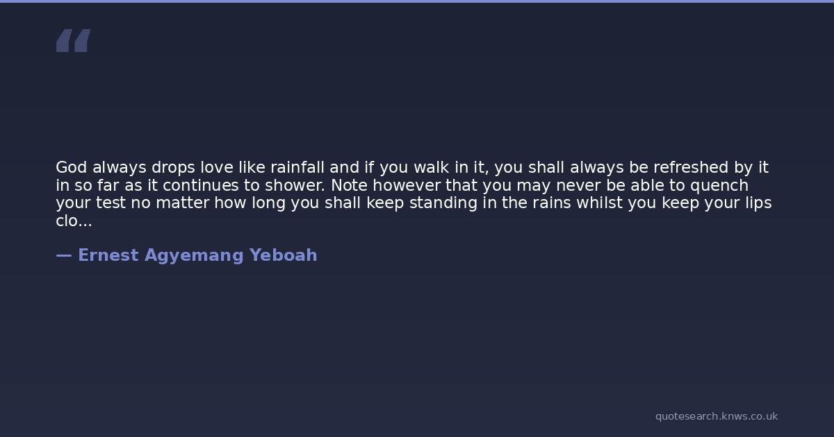 God always drops love like rainfall and if you walk in it, you shall always be refreshed by it in so far as it continues to shower. Note however that you may never be able to quench your test no matter how long you shall keep standing in the rains whilst you keep your lips closed.