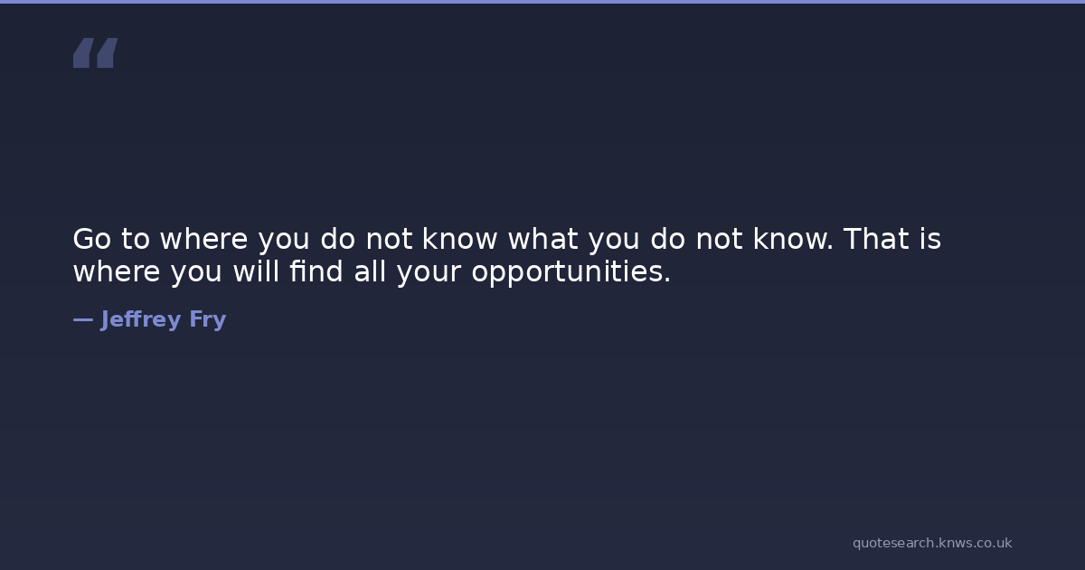 Go to where you do not know what you do not know. That is where you will find all your opportunities.
