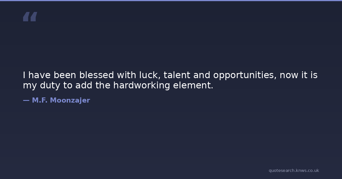 I have been blessed with luck, talent and opportunities, now it is my duty to add the hardworking element.