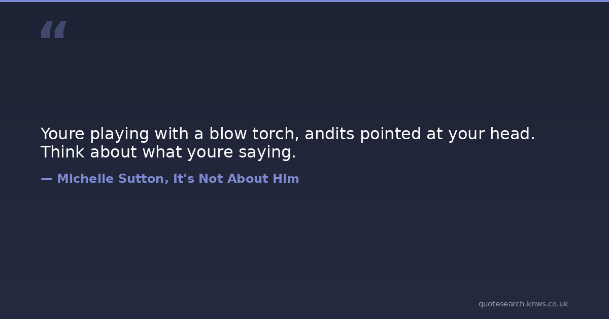 Youre playing with a blow torch, andits pointed at your head. Think about what youre saying. romance-novels Download Image Share on X Share on Facebook Copy Link