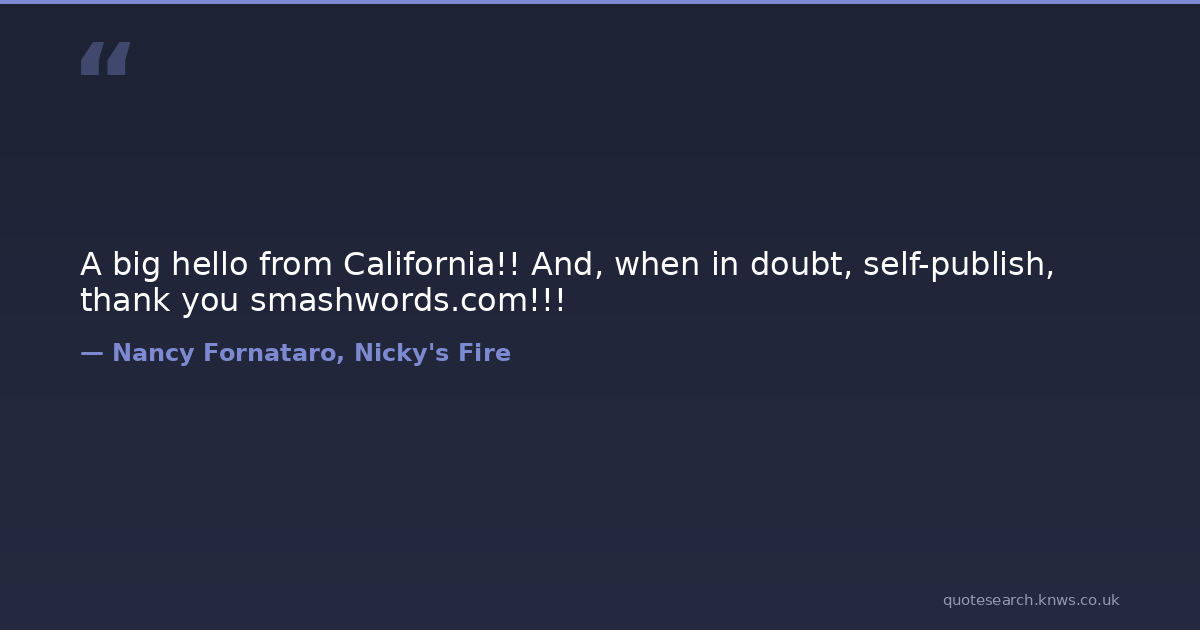 A big hello from California!! And, when in doubt, self-publish, thank you smashwords.com!!! romance-novels Download Image Share on X Share on Facebook Copy Link