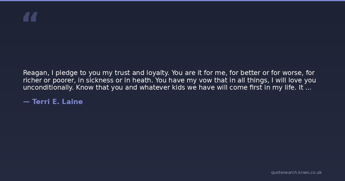 Reagan, I pledge to you my trust and loyalty. You are it for me, for better or for worse, for richer or poorer, in sickness or in heath. You have my vow that in all things, I will love you unconditionally. Know that you and whatever kids we have will come first in my life. It will be my goal to keep you and our children happy for the rest of my life.