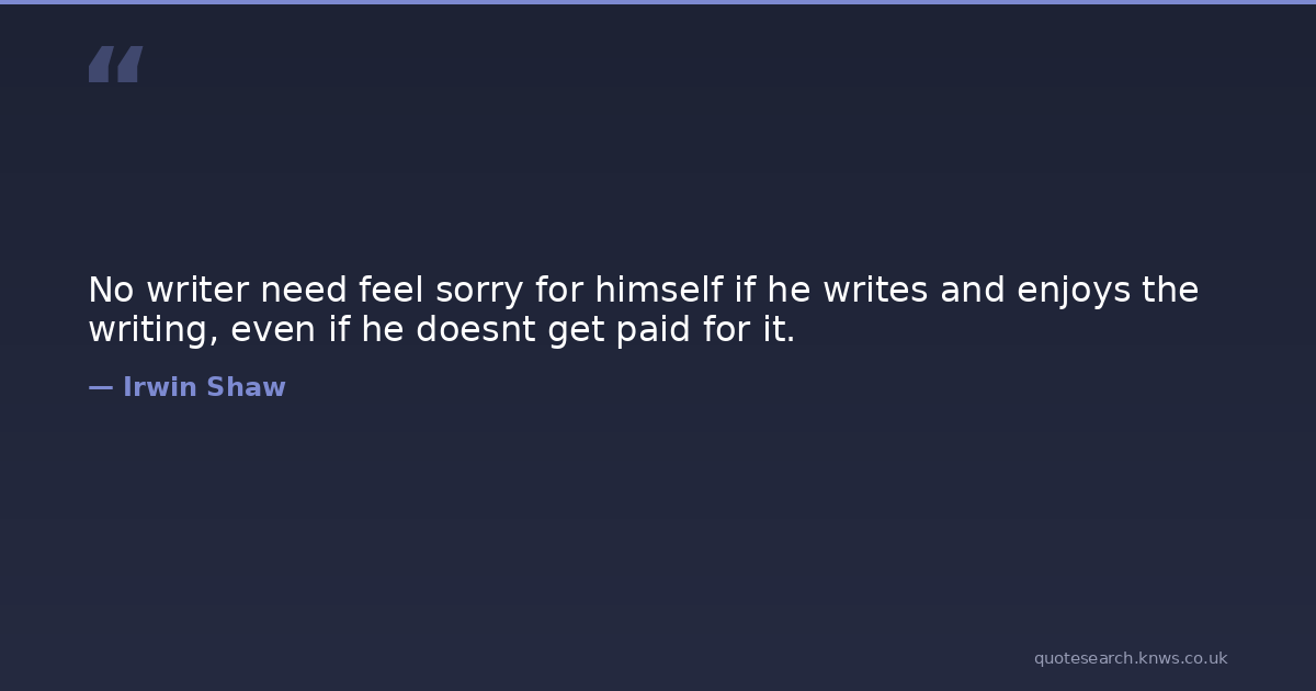 No writer need feel sorry for himself if he writes and enjoys the writing, even if he doesnt get paid for it.