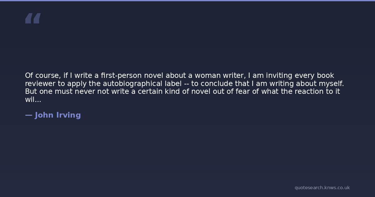 Of course, if I write a first-person novel about a woman writer, I am inviting every book reviewer to apply the autobiographical label -- to conclude that I am writing about myself. But one must never not write a certain kind of novel out of fear of what the reaction to it will be.