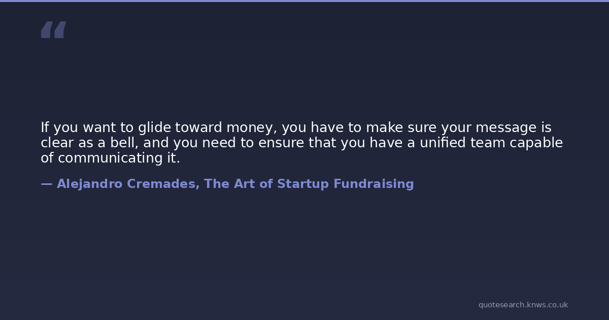 If you want to glide toward money, you have to make sure your message is clear as a bell, and you need to ensure that you have a unified team capable of communicating it.