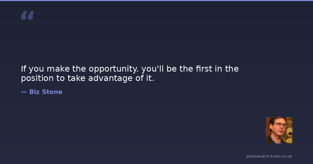 If you make the opportunity. you'll be the first in the position to take advantage of it.