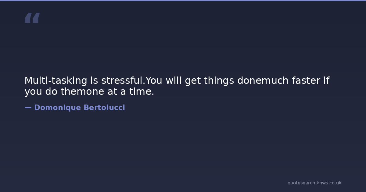 Multi-tasking is stressful.You will get things donemuch faster if you do themone at a time.