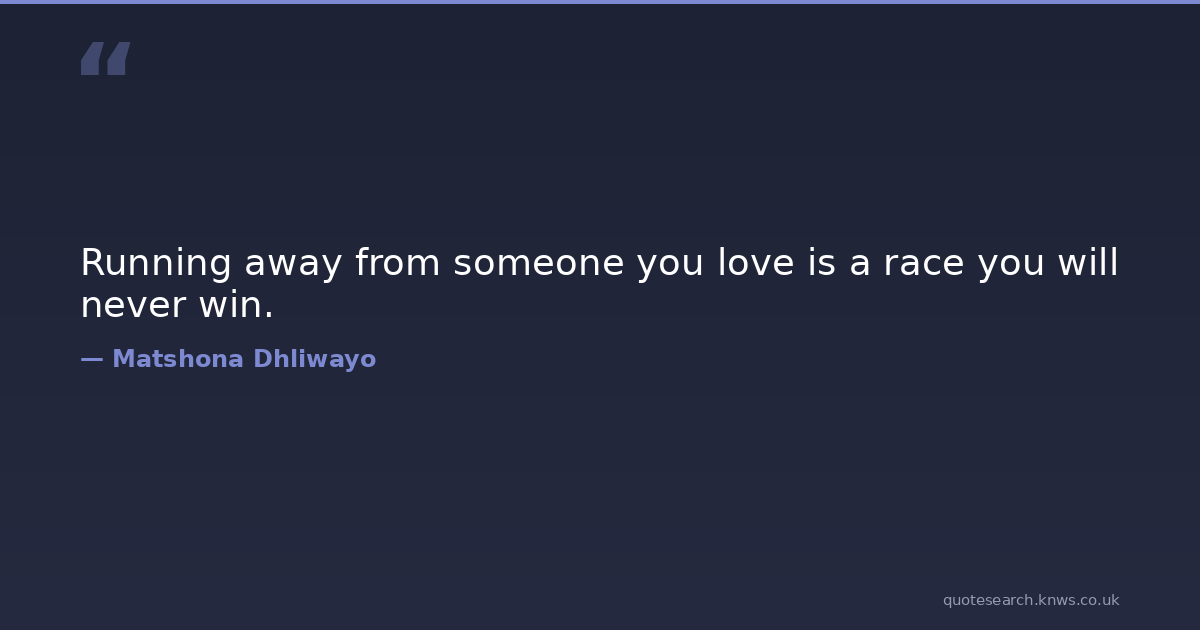 Running away from someone you love is a race you will never win. boyfriend-and-girlfriend boyfriend-quotes courtship-quotes dating-quotes girlfriend-quotes husband-quotes love-quotations love-quotes love-quotes-and-sayings marriage-quotes relationship-101 relationship-advice-quotes relationship-quotes running-away running-quotes wife-quotes Download Image Share on X Share on Facebook Copy Link
