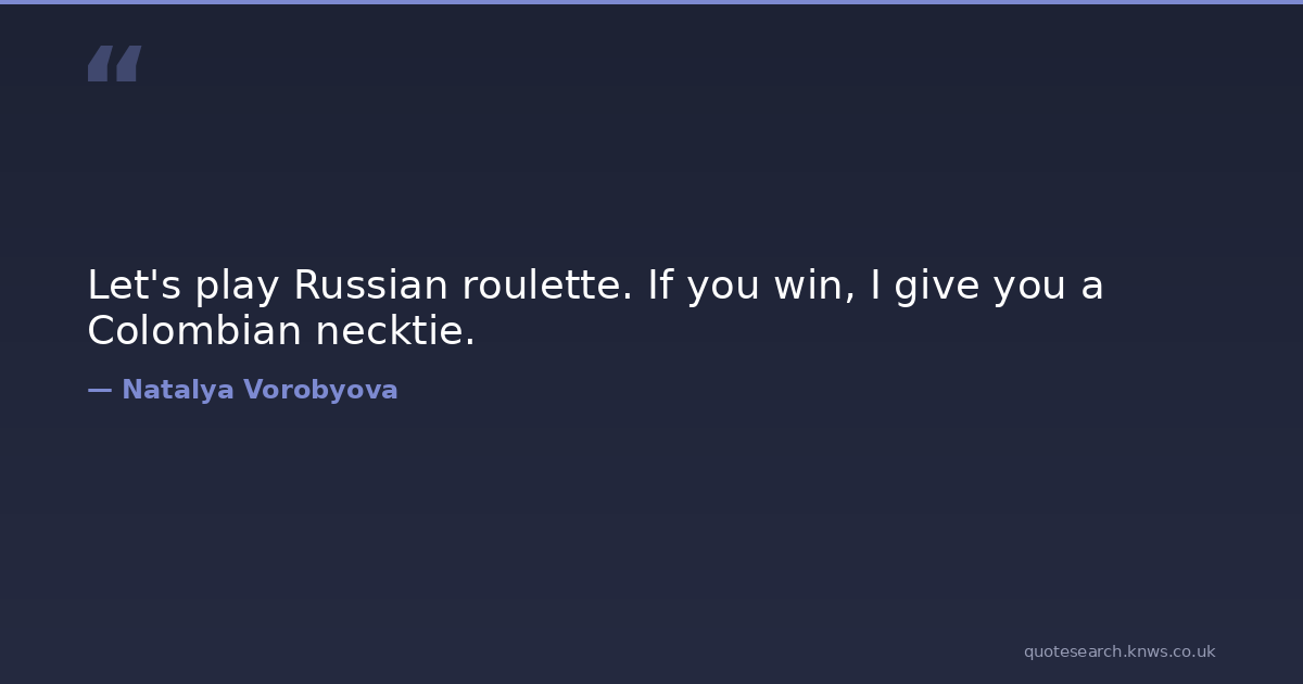 Let's play Russian roulette. If you win, I give you a Colombian necktie.