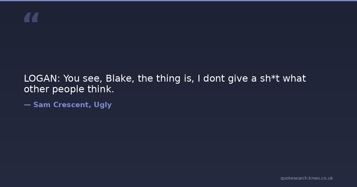LOGAN: You see, Blake, the thing is, I dont give a sh*t what other people think. bad-boys bullying erotic-romance first-love Download Image Share on X Share on Facebook Copy Link