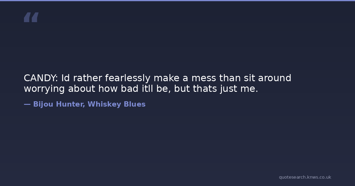 CANDY: Id rather fearlessly make a mess than sit around worrying about how bad itll be, but thats just me.