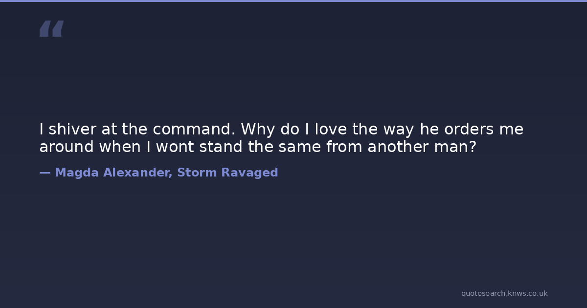 I shiver at the command. Why do I love the way he orders me around when I wont stand the same from another man?