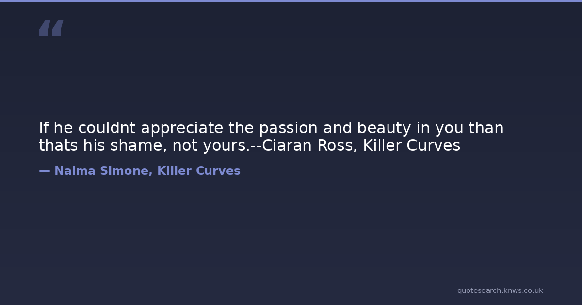 If he couldnt appreciate the passion and beauty in you than thats his shame, not yours.--Ciaran Ross, Killer Curves