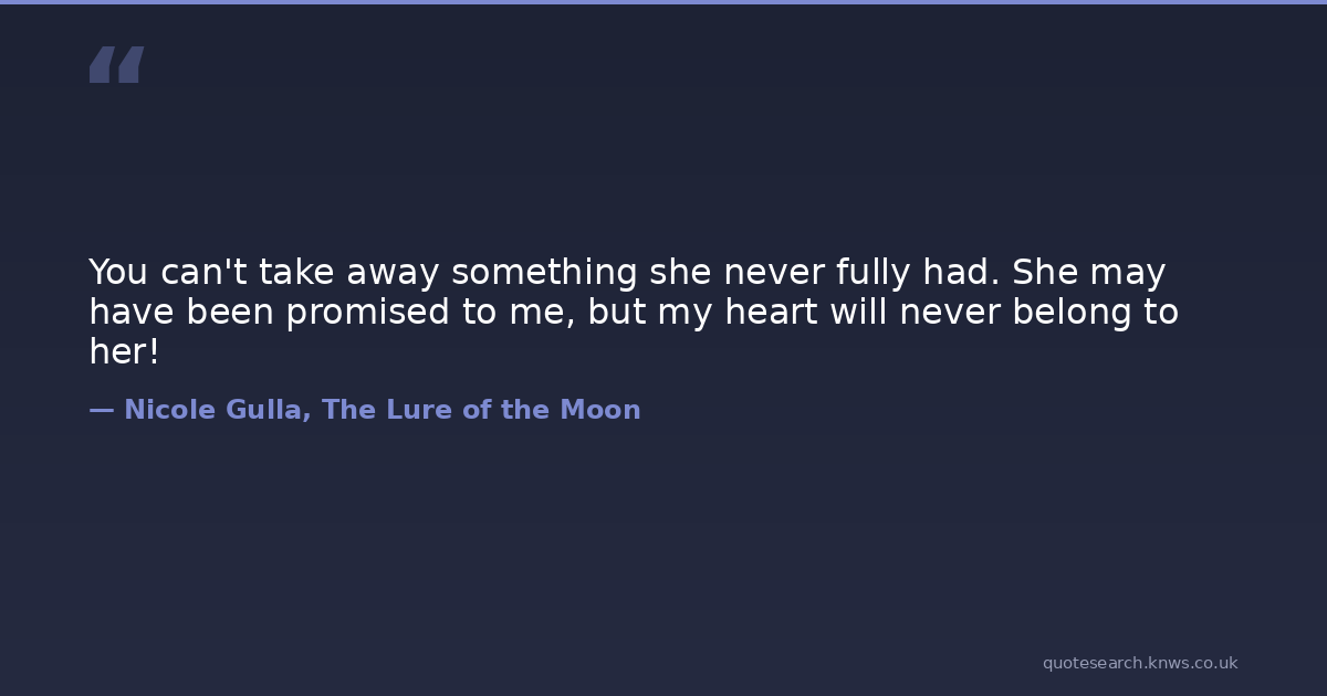 You can't take away something she never fully had. She may have been promised to me, but my heart will never belong to her!