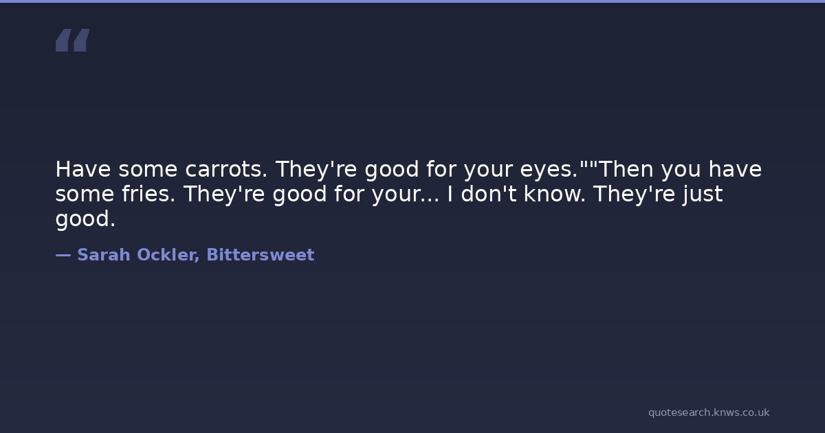 Have some carrots. They're good for your eyes.""Then you have some fries. They're good for your... I don't know. They're just good.