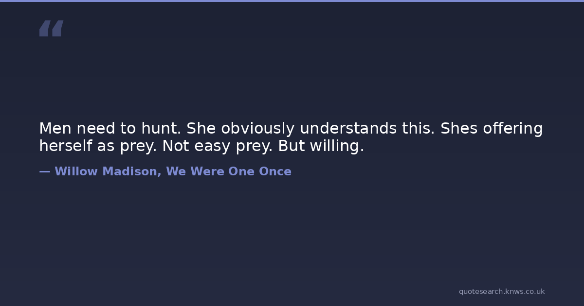 Men need to hunt. She obviously understands this. Shes offering herself as prey. Not easy prey. But willing.