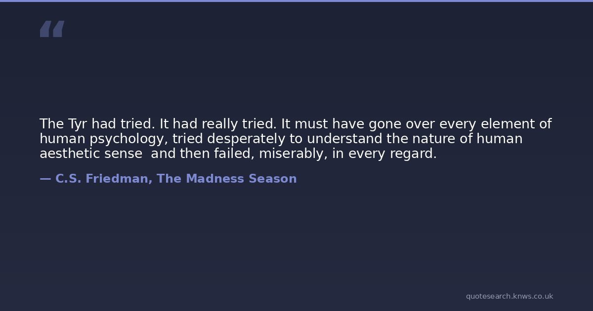 The Tyr had tried. It had really tried. It must have gone over every element of human psychology, tried desperately to understand the nature of human aesthetic sense and then failed, miserably, in every regard.