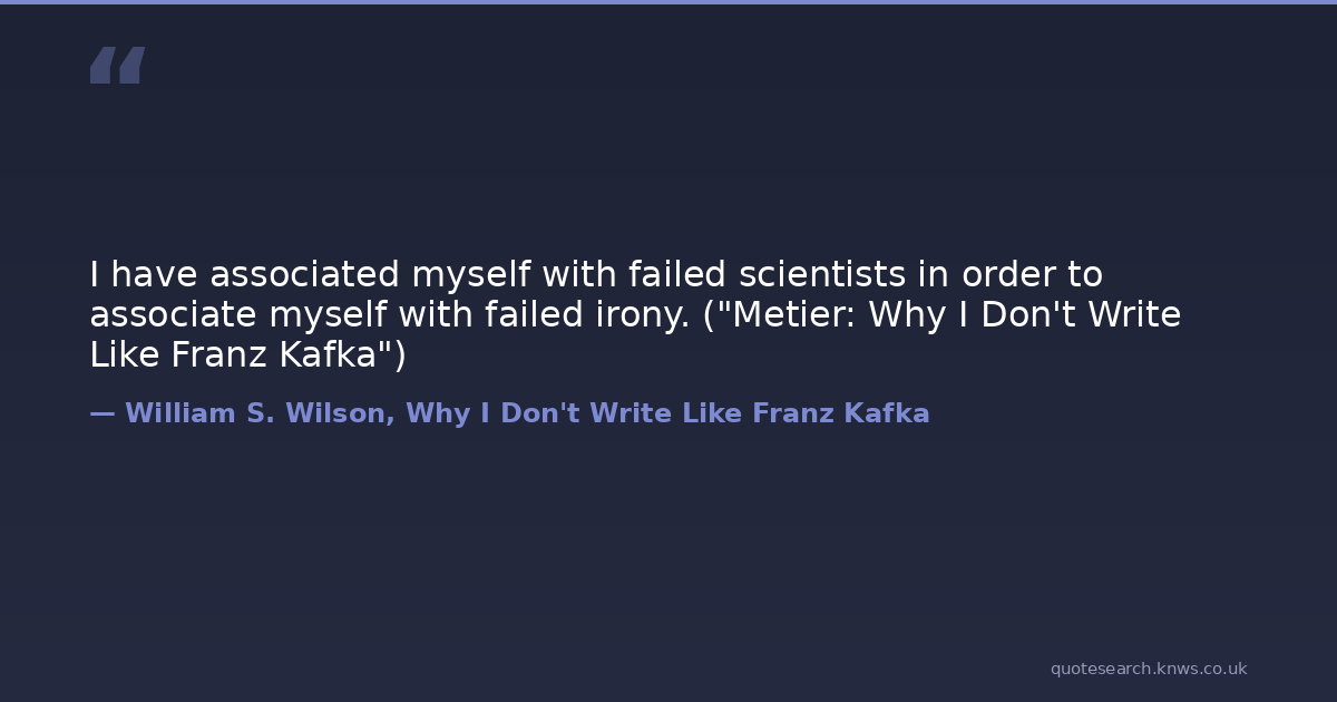 I have associated myself with failed scientists in order to associate myself with failed irony. ("Metier: Why I Don't Write Like Franz Kafka")