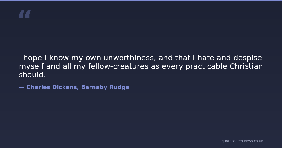 I hope I know my own unworthiness, and that I hate and despise myself and all my fellow-creatures as every practicable Christian should.