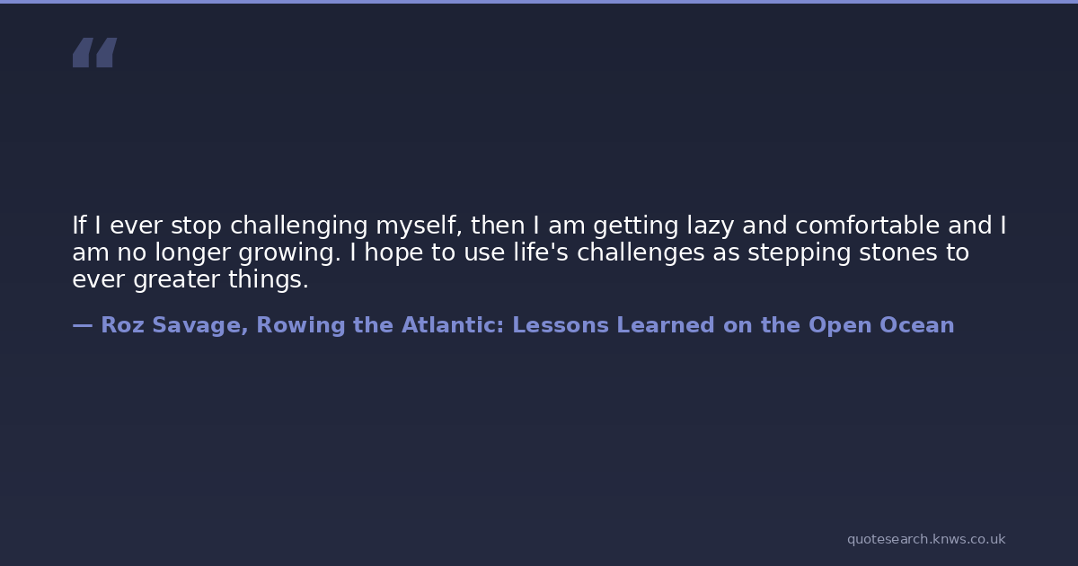 If I ever stop challenging myself, then I am getting lazy and comfortable and I am no longer growing. I hope to use life's challenges as stepping stones to ever greater things.