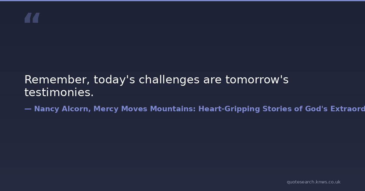 Remember, today's challenges are tomorrow's testimonies. challenges inspirational reminder spiritual testimony Download Image Share on X Share on Facebook Copy Link