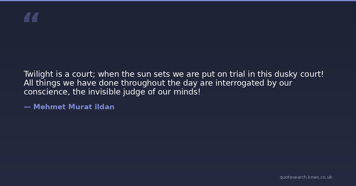 Twilight is a court; when the sun sets we are put on trial in this dusky court! All things we have done throughout the day are interrogated by our conscience, the invisible judge of our minds!