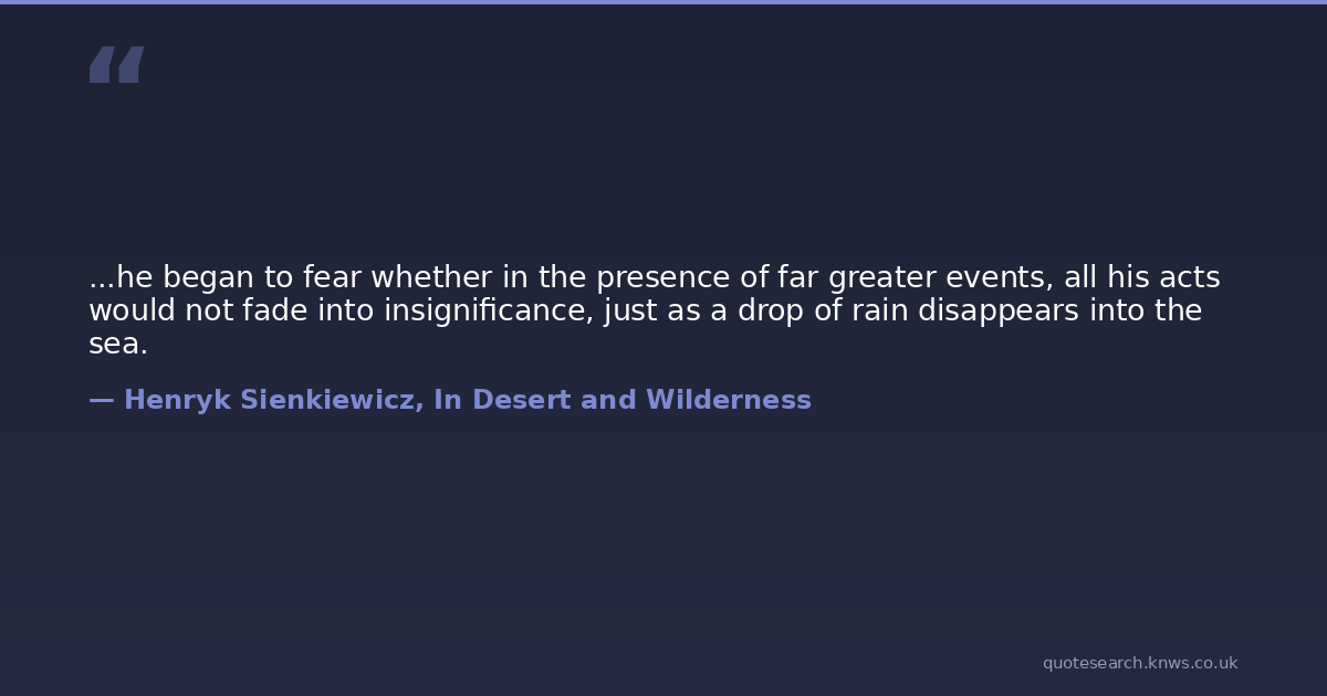 ...he began to fear whether in the presence of far greater events, all his acts would not fade into insignificance, just as a drop of rain disappears into the sea.