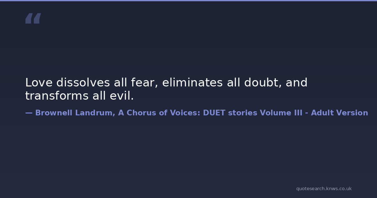 Love dissolves all fear, eliminates all doubt, and transforms all evil.