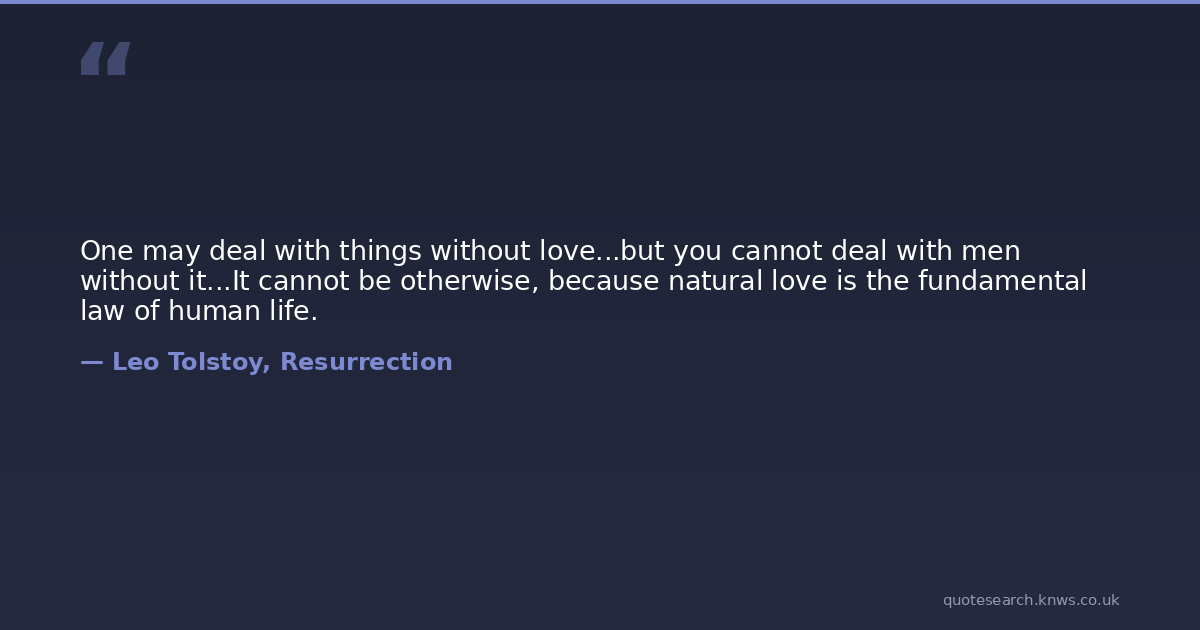 One may deal with things without love...but you cannot deal with men without it...It cannot be otherwise, because natural love is the fundamental law of human life.