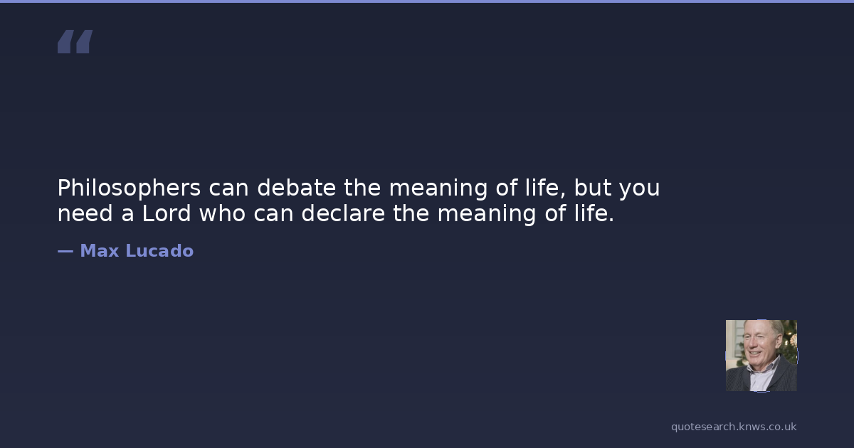Philosophers can debate the meaning of life, but you need a Lord who can declare the meaning of life.