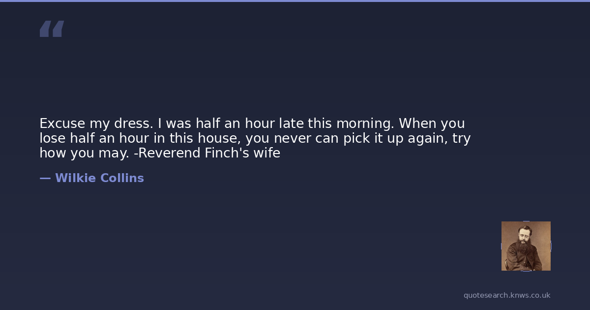 Excuse my dress. I was half an hour late this morning. When you lose half an hour in this house, you never can pick it up again, try how you may. -Reverend Finch's wife