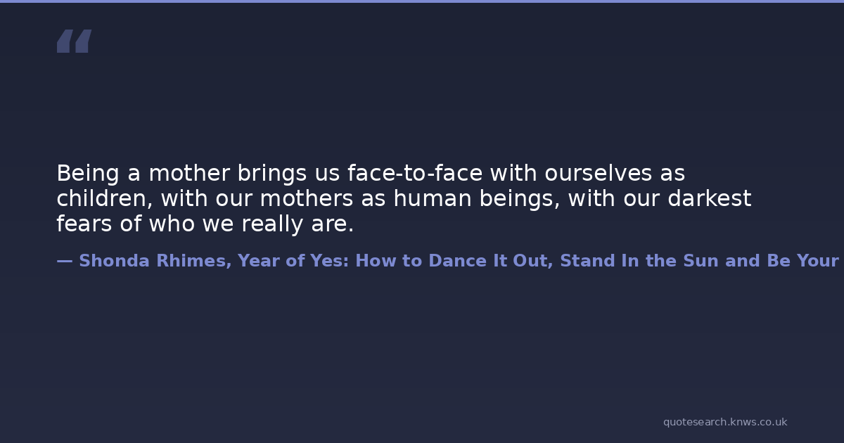 Being a mother brings us face-to-face with ourselves as children, with our mothers as human beings, with our darkest fears of who we really are.