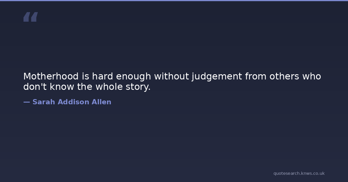 Motherhood is hard enough without judgement from others who don't know the whole story.