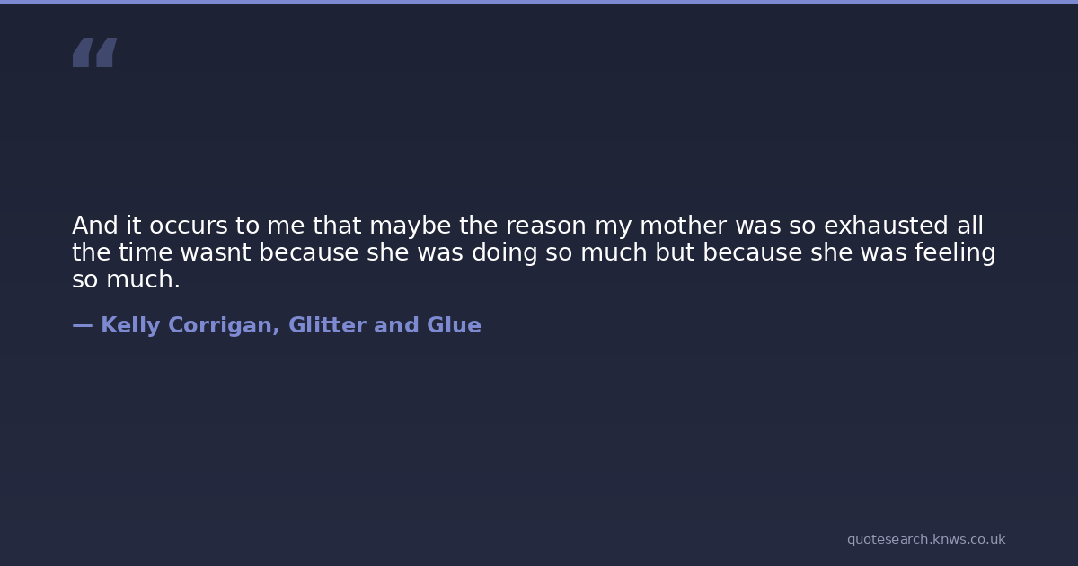 And it occurs to me that maybe the reason my mother was so exhausted all the time wasnt because she was doing so much but because she was feeling so much.