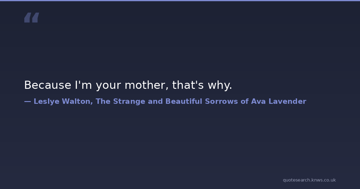 Because I'm your mother, that's why.