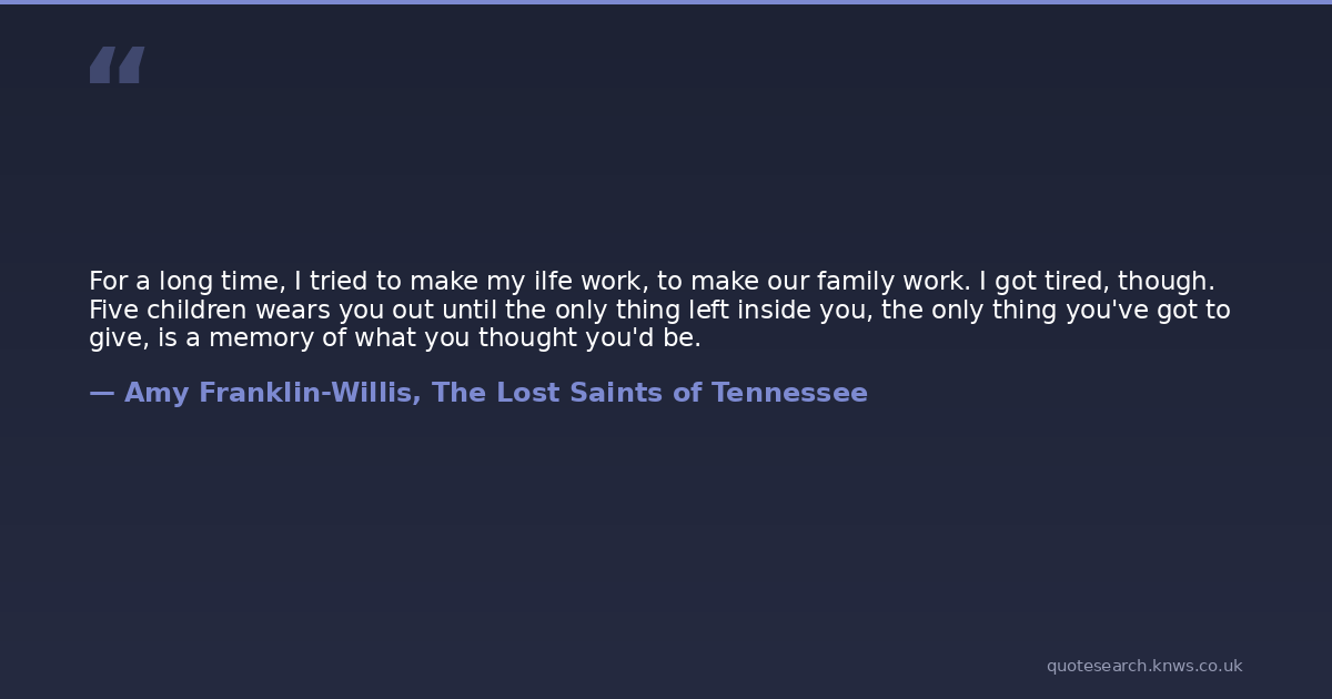 For a long time, I tried to make my ilfe work, to make our family work. I got tired, though. Five children wears you out until the only thing left inside you, the only thing you've got to give, is a memory of what you thought you'd be.