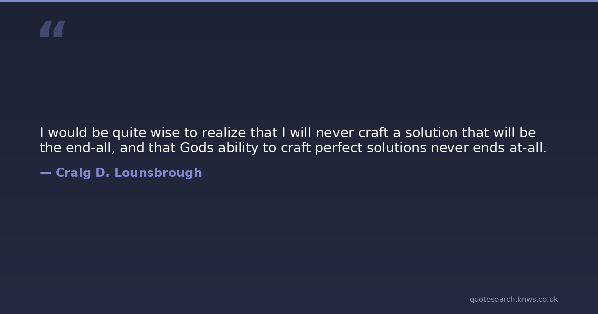 I would be quite wise to realize that I will never craft a solution that will be the end-all, and that Gods ability to craft perfect solutions never ends at-all.