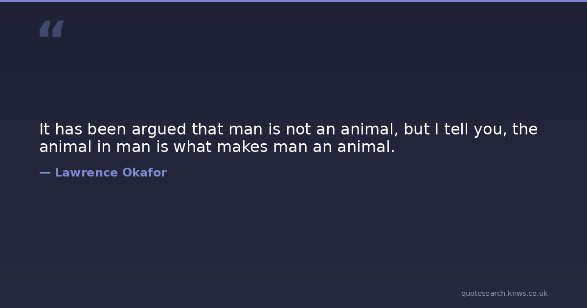 It has been argued that man is not an animal, but I tell you, the animal in man is what makes man an animal. mankind Download Image Share on X Share on Facebook Copy Link