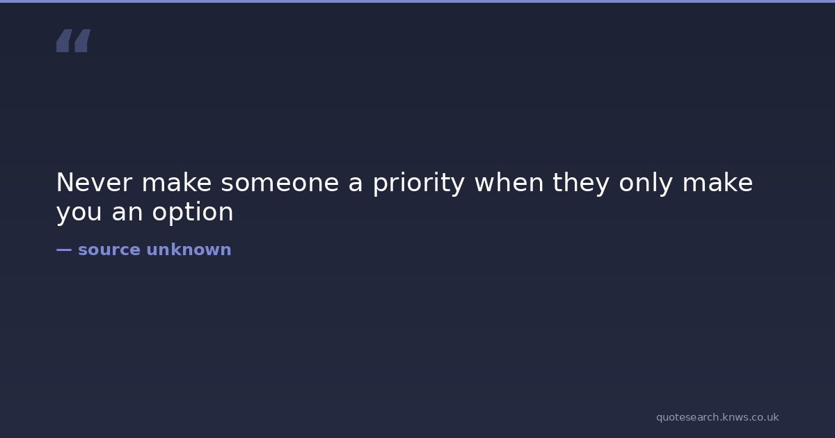 Never make someone a priority when they only make you an option relationships self-worth Download Image Share on X Share on Facebook Copy Link