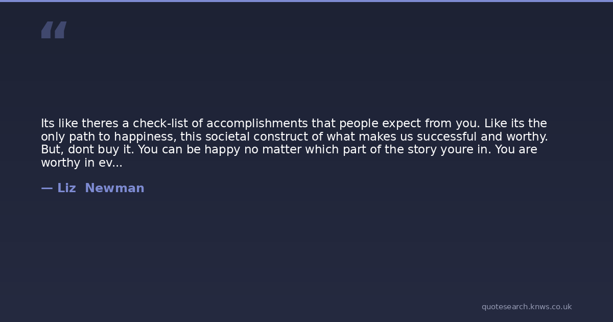 Its like theres a check-list of accomplishments that people expect from you. Like its the only path to happiness, this societal construct of what makes us successful and worthy. But, dont buy it. You can be happy no matter which part of the story youre in. You are worthy in every chapter.
