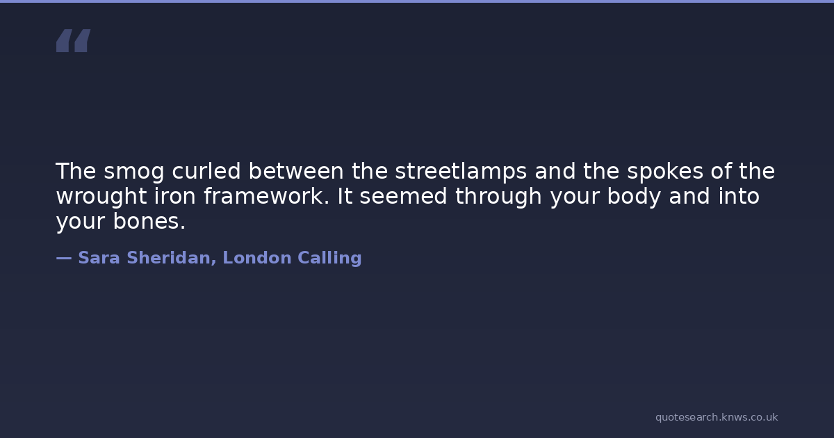 The smog curled between the streetlamps and the spokes of the wrought iron framework. It seemed through your body and into your bones.