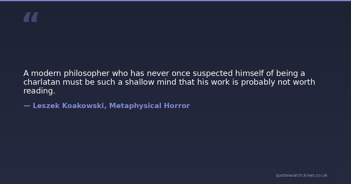A modern philosopher who has never once suspected himself of being a charlatan must be such a shallow mind that his work is probably not worth reading.
