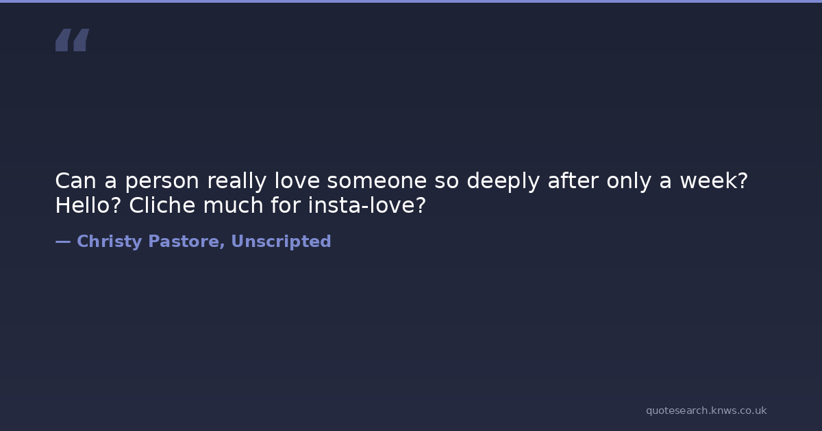 Can a person really love someone so deeply after only a week? Hello? Cliche much for insta-love? humorous-quotes insta-love love-quotes romance-love Download Image Share on X Share on Facebook Copy Link