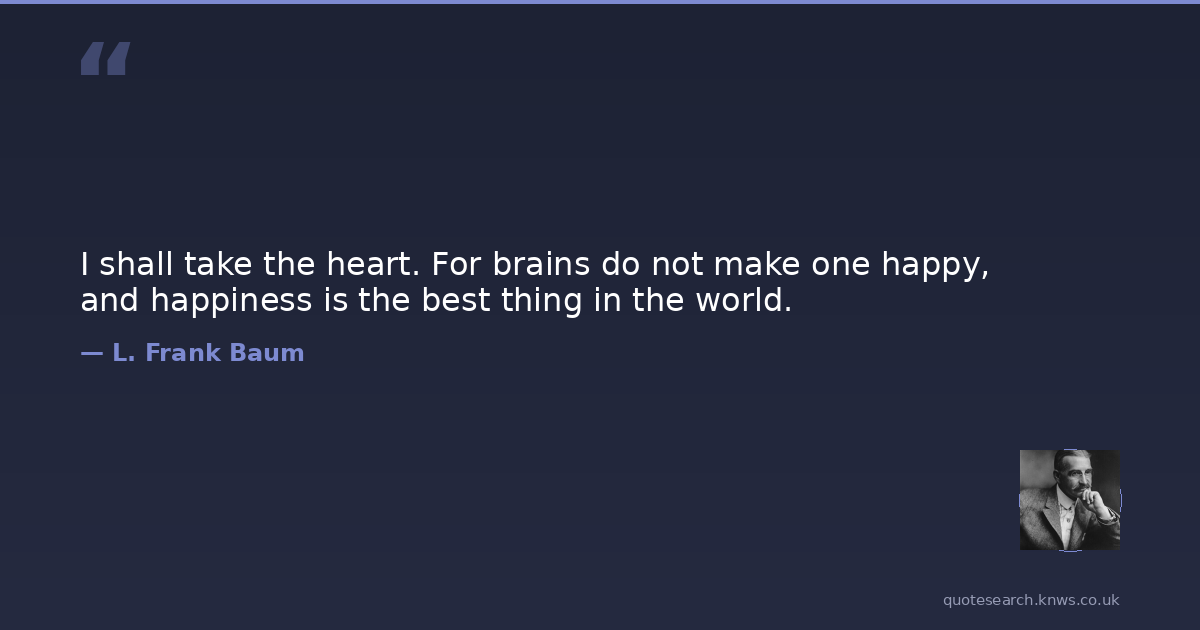 I shall take the heart. For brains do not make one happy, and happiness is the best thing in the world.