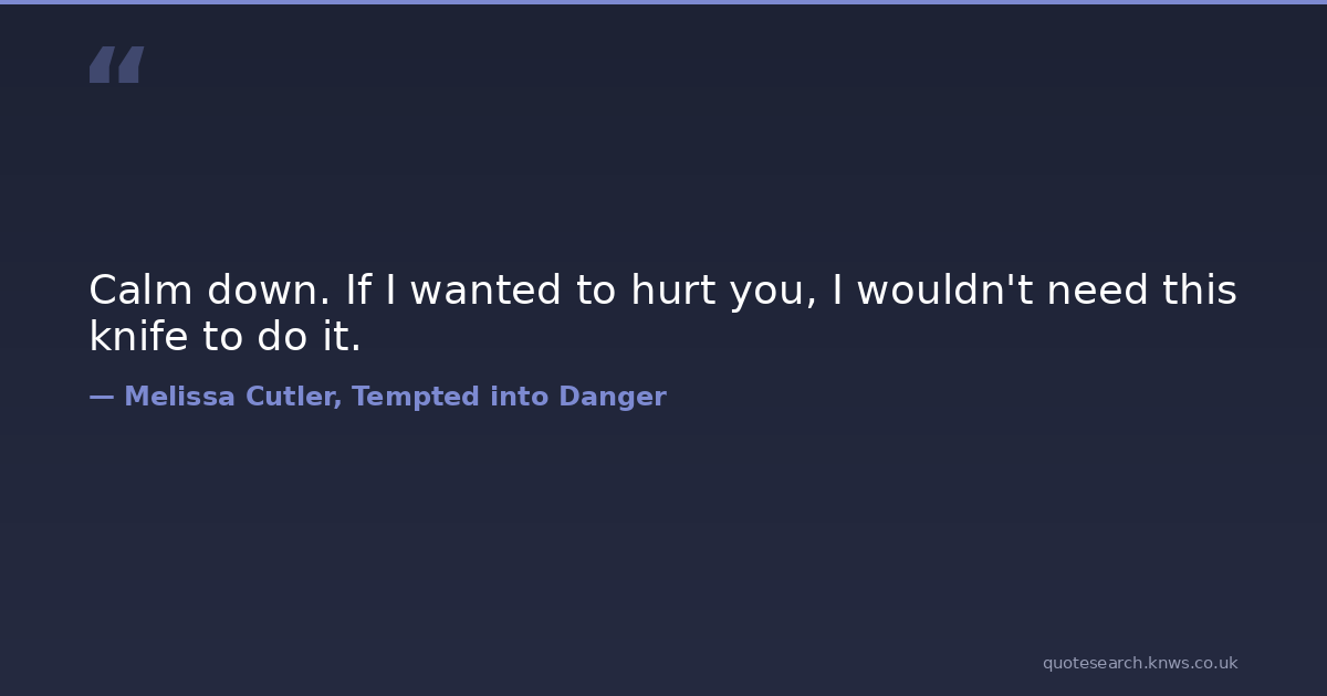 Calm down. If I wanted to hurt you, I wouldn't need this knife to do it.