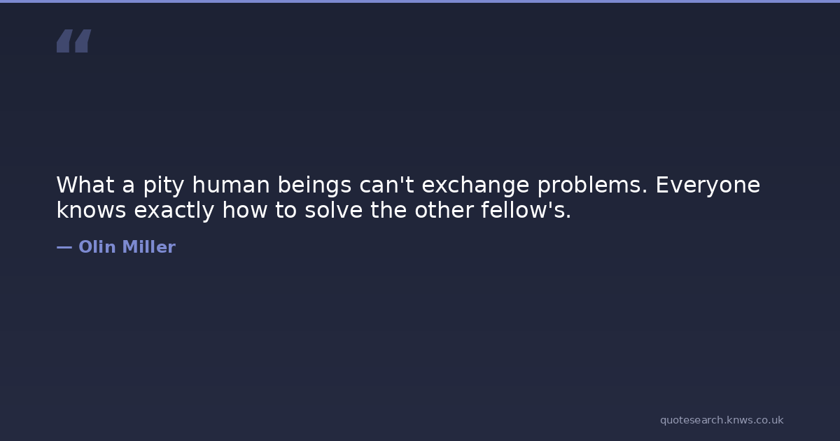 What a pity human beings can't exchange problems. Everyone knows exactly how to solve the other fellow's.
