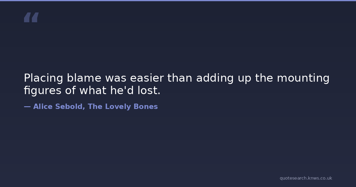 Placing blame was easier than adding up the mounting figures of what he'd lost.