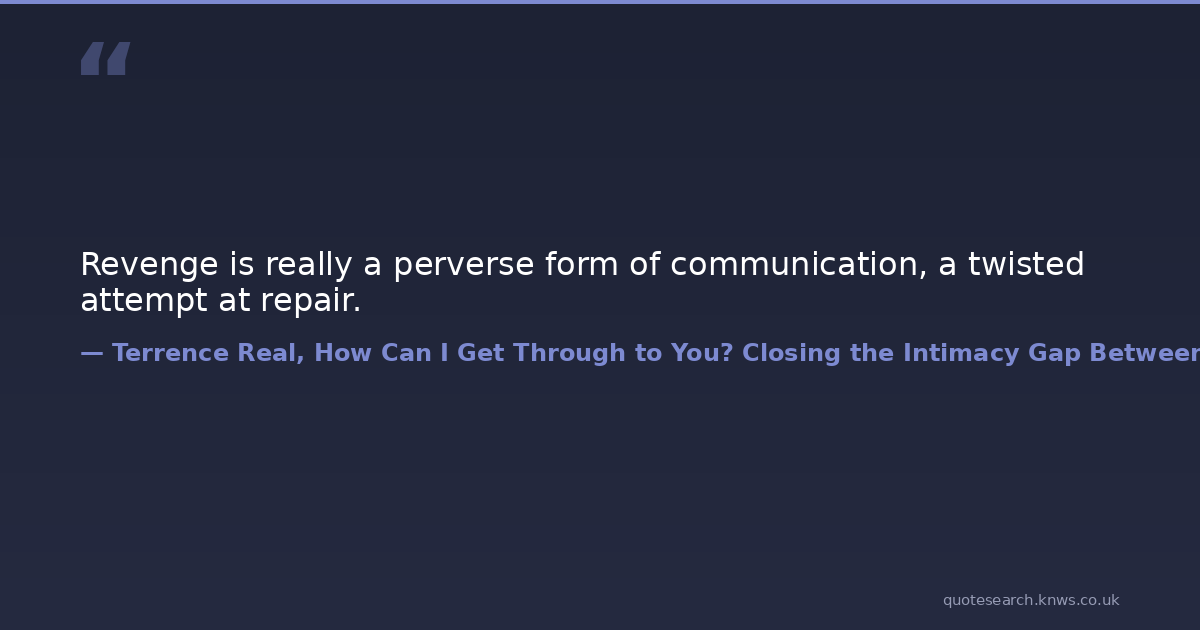 Revenge is really a perverse form of communication, a twisted attempt at repair.