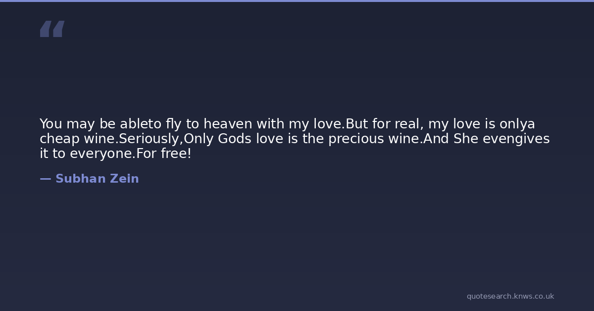 You may be ableto fly to heaven with my love.But for real, my love is onlya cheap wine.Seriously,Only Gods love is the precious wine.And She evengives it to everyone.For free!